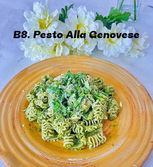 Fresh pasta tossed in handmade basil pesto and aged Parmesan cheese.