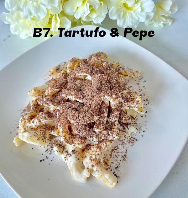 Creamy pasta infused with truffle zest and fresh black pepper.