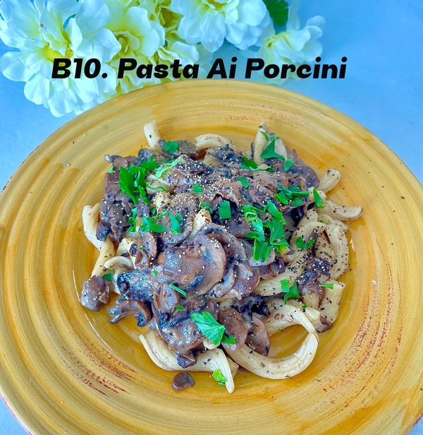 A classic pasta dish with savory porcini mushrooms, garlic, and Parmesan in a rich, flavorful sauce.